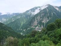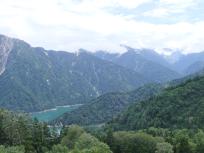 黒部ダムでは、ガイドブックにあったふぉっとダムというダム展望台屋上に設置されたカメラからの自動撮影による記念撮影をしました。レストハウス側から黒部湖駅方向は、天気がイマイチで曇り空に写ったのが残念かな。でも、いい記念になりました。