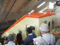 集合時間の15分前に集合場所に着いて、添乗員さんから乗車券を受け取り、乗車待ちの列に並びました。もう、かなりのツアーメンバーさんが集まっているようです。