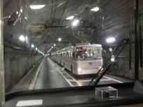 トンネルから出ると前を走るバスの後姿が見えました。出発での遅れは大きくはなかったようです。
