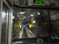 ←の黄色の照明は富山県と長野県の県境だと車内アナウンスがありました。ここで長野県ですかぁ。立山黒部アルペンルートのほとんどは富山県なのですね。