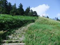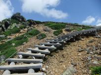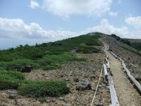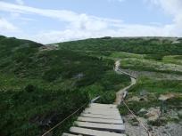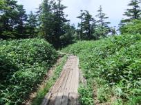 登山者が少ないのか、木道の下の笹がもの凄い勢いで成長しています。そしてこの木道の段差と角度が微妙に私の足のコンパスと合わなくて登り辛い(涙)。