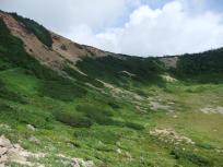 逢ノ峰の登山道のほぼお向いさんに今朝利用した本白根コマクサリフトがありました。あれに乗ってから4時間ちょっとで、ここにいるのですか〜。って、本白根の1周のハイキングコースのコースタイムは2時間。いくら昼食を摂っていたとはいえ、2倍の時間がかかっているのは、時間のかけすぎでしょう。>自分