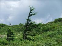 しばらく歩くと、↓のような枝ぶりの木が何本も出現。風の吹く方向と強さから、枝が一方にしか伸びられないようです。自然の驚異。