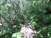←の道をしばらく進み、木立の中の木道に入ります。木立の中は風が遮られるので、少々、蒸し暑く感じたりもしました。