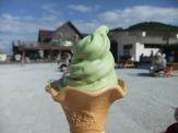 再び、白根レストハウスでトイレをお借りして、自分へのご褒美のソフトクリーム。熊笹ソフトのネーミングに魅かれて購入したけど、抹茶味だったような気がします…。
