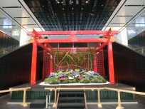 | 浜松町駅からモノレールの先頭車両の先頭座席をゲット。進行方向をかぶり付き席で楽しみます。ルン☆ まずは羽田空港国際線ビルで下車。モノレールから出発ロビーは近くて快適。出発ロビーからすぐに4階の江戸小町へ上がるとエスカレーター正面の江戸舞台は花でディスプレイされていました。七夕? さらに5階のしろたんタウンへ。 |