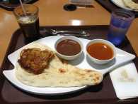 昼食は、フードコートは会議机にベンチで食べる設営で、少し落ち着けない気がしたので、一旦、旅博の会場を出て、東京ビッグサイトのレストランで食べました。 ナンの下にご飯(白飯)もあります。ナンを食べるのは何年ぶり?久しぶりのナンは美味しかったです。鶏肉は、もう少し温かいともっと美味しかったのになぁ〜。色の濃いカレーが普通のビーフカレーで普通にいただけました。赤いほうのカレーはバター何とかで最初は甘く感じたのに、食べ進むに連れてドンドン辛く感じるようになりました。最後は酸っぱい? |