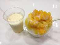 | デザートはフードコートに戻ってマンゴーカキ氷をいただきました。 マンゴーカキ氷屋さんの間は、隣りの店の前にはみ出して、さらに何重にも折り返して並んでいました。会計&注文は並んでいるところに御用聞きにいらっしゃる方にします。 マンゴーが甘くて、カキ氷の氷がすっごい細かくて滑らかでおいしかったぁ♪ 日本で食べても美味しいのですから、本場の台湾ではさぞかし美味しいことでしょう。台湾でスイーツの食べ歩きをする方が多いのが、何となく判ったような気がします。 |
