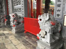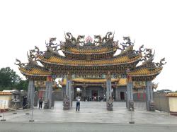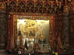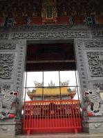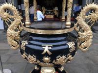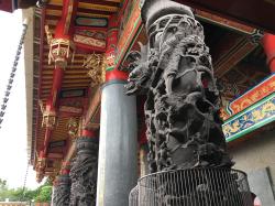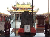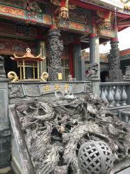 本殿前の龍珠を持つ龍にご挨拶。この龍さんはツアー客さん方に大人気で、先刻まで取り巻かれていました。階段を上り、本殿前へ。本殿前には、立派な香炉があります。このときは、お線香は上げられていませんでした。このへんが、本場台湾とこちらとの違いかなぁ。