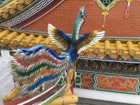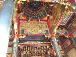 まずは、向かって右側の楼閣へ上ります。屋根の上の鳳凰や龍の飾りが近くで見られるので、これはとても面白かったです。ただ、離れて見ると綺麗な鳳凰も、羽が欠けたり、抜けたりしていて残念なところもありました。メンテナンス、がんばっていただきたいです。