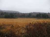 | 玉原湿原の草紅葉を眺めながらマイペースでてくてく。紅葉も終わりかけながら、何とか残っている感じでよかった〜♪ ここで写真を撮っていたら、男性2人組にさっさと追い抜かれました。 湿原歩きは約30分。玉原越・ブナ平分岐に近づくに連れて周囲の景色も普通の山道のそれに移り変わっていきます。 |