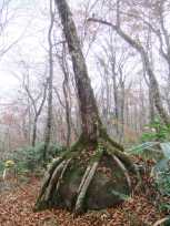 | 岩を抱いて成長しているブナ(?)の木もありました。がんばって生きてます。 | |||