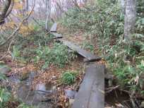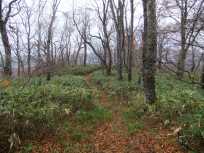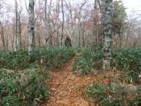 | それにしても人に会いません。これまでに出会った人は、玉原湿原に入ってすぐのところで私たちを追い抜いていった2人組さんだけです。やはり来る時期が少し遅かったのかなぁ〜。 | ブナ平 |