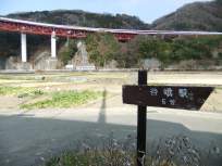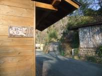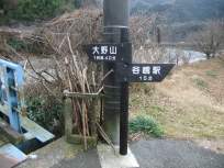 ハイキングコースの出口(入口)には、手作りの指導標がありました↓。 指導標に従って、車道を谷峨駅に向かいます。 |