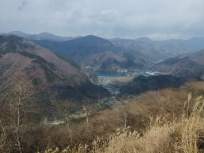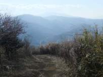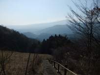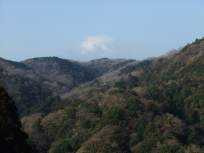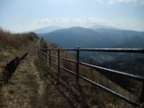 | 谷峨駅に向けて下山開始。 上りから抜きつ抜かれつしている3人組さんに下山早々に追い抜かれ、谷峨駅に着くまで追いつきませんでした。私たちは本当に下山のペースが遅いようです。う〜む〜。 下山の前半は、進行方向や右側に山々や富士山の姿が見えて、気持ちよく歩けました。進行方向に山々が見えると、まるでそこに吸い込まれていくような錯覚に陥りました。 気をつけて見ていましたけれど、富士山はその姿が見えているいっぱい、山頂が見えませんでした。 |