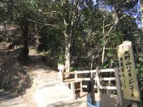 | そしてようやく大野山の登山口に到着。大野山入口バス停でバスを降りてから車道を1時間くらい歩いたでしょうか。やっと山道です。 小腹が空いていたので、登山口に入ってすぐの少し奥まっていて登山道を歩く方を邪魔せず(多分、気づかれず)に休憩できる場所を見つけておやつタイムにしました。行動食を食べていると、3人組の登山者さんが私たちの目の前を予想通り私たちに気づかずに通り過ぎていきました。先程のタクシーに乗って来た方々かなぁ。 |