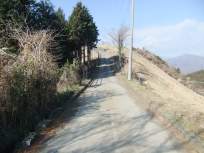 | 共和小学校経由大野山の指導標に従って先に進むと、道は右の写真のような舗装道とはいえかなり傾斜角度のある道に入って行きます。「ここを小学生が通学するの???鍛えられる〜」と思わず口をついて出てきてしまいました。 坂の上に集落があったので、この集落の子供たちが共和小学校に通っていて、下から上る子たちはいないのかもしれませんが…。 |