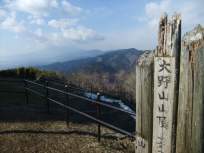 | 下山する予定の谷峨駅方向から上って来た方と話したら、「こちらは急登でしたよ」と、怖いことをおっしゃっていました。 大野山山頂で1時間近く、昼食、写真撮影、トイレと粘りましたが、結局、富士山の山頂を隠している雲は切れず、富士山山頂とはお目にかかれないまま、ここで下山することにします。 まぁ、富士山の“姿”は見られたということで…よしとしましょう。(だいぶ強がり?!) |