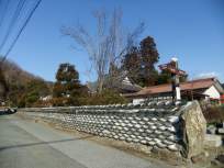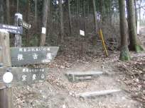 | ←の立派な塀のあるお寺を右に見て、真っ直ぐ進み、10数mすると、→の指導標のある長瀞アルプスの登山口に到着します。 登山口から20分くらいかなぁ、山道を進むと明るく気持ちのいい尾根歩きになりました。 |