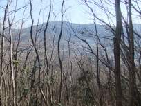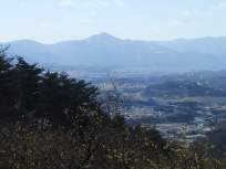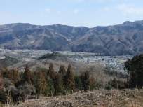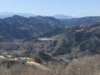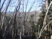 | 尾根道は落葉樹が多くて、2月は葉が落ちて明るく見晴らしがよく、長瀞アルプスの両脇に連なる秩父の山々を左右に見ながら↓、楽しく山歩きができました。 樹の間越しの秩父の山の姿が、清々しく、まったりとした気分にしてくれました。 道もそれなりに上っていても、穏やかで歩きやすいので、尚更、全体の風景を見ながら歩けたのだと思います。 |