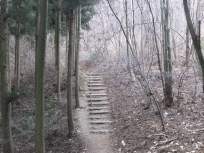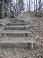 | 確か、ガイドブックには200段の階段があると書いてあったような…。 いくつかの階段を上り、岩場→が出てきたので、もう階段は終わりで、この岩場を上りきれば、宝登山の山頂かと思いきや、岩場の先には、またしても階段出現! |