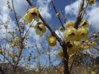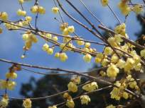 | 秩父の山で唯ふたつ見分けられる山が↑の両神山と←の武甲山。 両方ともガイドブックでは中級なので、私たちはまだまだ遠くからうっとり眺めるだけの憧れの存在です。いつか両神山や武甲山に登れる日がくるのかなぁ。 大パノラマを鑑賞しながらお弁当を楽しんだ後は、ロウ梅見物です。 |