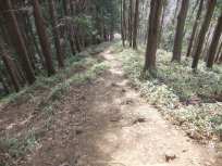 | ようやく四辻。ここでJR高尾駅への道と分けて、京王高尾山口駅への道を進みます。 この道が、急降下。急降下。急降下。一気に駅に向かって下って行きます。 足元に気をつけて最後のがんばり。 何とか無事に京王高尾山口駅に下山できました。 |