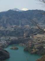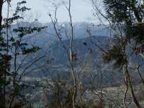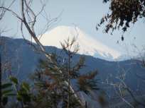 | 今年になってから始めてのウグイスの声を聞きました。山はまだ冬の装いですけれど、春は確実に来ているのですね。 上って行く先の木々の間から、その先にある山々が見えるなぁ〜と、思ってよく見ると富士山が木々の隙間から見えるではないですか! |