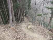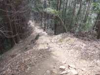 草戸山からの下山も1時間以上あるので、あまりゆっくりしていられないのが残念。 お弁当を食べ終えたら、コーヒータイムもそこそこに、展望台からの展望を楽しんだ後、早々に下山にかかります。 下山にかかると間もなく、↓こんな急降下が…。 お弁当を食べて満腹の身には堪えます。。。腹八分目か…。 |