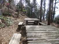 | そうこうしていると中沢峠に到着。 中沢峠にも、テーブルとベンチがセッティングされ、休憩が取れるようになっています。 休憩したいところですが、その前に中沢山山頂に行きましょう。 |