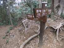| アップダウンを乗り越えて、草戸山から約15分で草戸峠に着きました。 草戸峠。私は草戸峠からは駅に向かって多少のアップダウンはあっても、基本はダラダラと下って行くのだと思っていました。 |