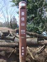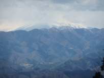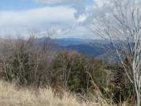 | 景信山からは、これから歩く北高尾の山々、奥多摩の山々なのかな、こちら側の山は近いこともあって、綺麗に見えていました。 山の色としては、まだまだ“冬”の衣を纏っているようです。 高尾山を上って景信山で昼食というコースもいいかも…。 |