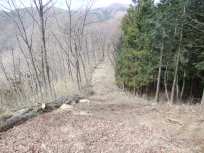 | などと、グルグルと考えながら杉の間伐が行われていると思えるような山道を下りました。 小下沢まで下りると、あとは林道を歩いて小下沢梅園まで行き、そこからは舗装道を歩いて大下バス停に向かいます。 いきなり穏やかな道になるとにわかにバスの時間が気になったりしてしまいました。 |
