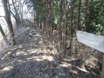 | と、思っていたら、その思いが天に通じたのか、ベンチがあるではありませんか! 指導標には手書きで大嵐山。私が参考にしているガイドブックに大嵐山の記述はなかったような…。でもでも、ナイスタイミングでのベンチの出現に、「ここで休憩!」に即決。行動食をいただきました。 堂所山から狐塚峠の間で、ベンチがあったのは、私の当てにならない記憶では、ここだけだったように思います。 |