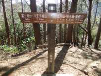 | 堂所山山頂表示を写真撮影していると、20数人の団体さんがご到着。あっという間にベンチがうまり、山頂にシートが広がっていきました。 あれ〜。ここでお弁当タイムにしようと思っていたけど、これは、落ち着いてお弁当する雰囲気ではないような…。でも、堂所山山頂は展望が良いですし、これから北高尾山稜に入ると展望がある場所があるかどうか…。う〜ん…と考えて、少しその辺りを散策して時間をずらして、団体さんが出発してから、堂所山山頂でお弁当することにして、一旦、山頂を離れました。 20数分後、再び堂所山山頂に戻ると、そこには誰もいませんでした。 |