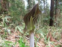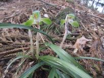 | 杉ノ丸近くの斜面に、←な蘭の仲間っぽい花が咲いていました。前回、通ったときには、ここにこういう花が咲く気配は微塵も感じられませんでした。1か月経ってないのに、植物、がんばって成長してます。 杉ノ丸を過ぎればクロドッケまでは、もうひとがんばり。 |