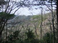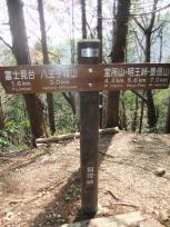 | 樹の間から高尾山方向の山々を眺めたりしながら進みますが、この木々も、前回の山歩きのときよりも葉がふくらみ、若草色が見えるようになったような気がします。 熊笹山から約20分ほどで富士見台に到着。 |