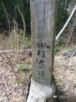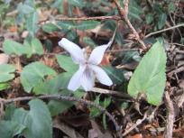 | 冬山から春山への過渡期でぽよぽよした感じの緑のイメージを受ける尾根道歩き。富士見台から狐塚峠へ向かう尾根道もアップダウンの連続。 富士見台から10分少々で杉沢ノ頭に到着。ここも手書きの表示(笑) 高尾山はスミレで有名らしいですが、北高尾山稜にもスミレがちらほら散見できました。 |