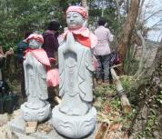 駒木野バス停から40分弱で愛宕山山頂に到着。愛宕山山頂は展望がないうえにさほど広さもなく、先客の方々が休憩なさっていたので、休憩せずに飲み物を一口飲んで先に進むことにしました。 山頂に安置されていたお地蔵さま's、結構、新しい感じ。ここまでどうやって運んだのか、運んだ方は、さぞ大変だったでしょう。 愛宕山まで上れば、あとは普通の尾根道歩き☆ |