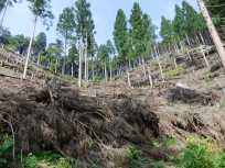 | ↑ 高水山までの山で大規模な伐採が行われていました。ところどころに苗木が植えられていましたから、杉から杉以外の木(多分、落葉樹)に植え替えているのかな〜などと、勝手に想像しながら歩いていました。 |