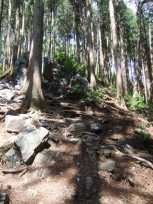 高源寺からのアスファルト道歩きの急登がきつかった〜。今回の山歩きで、私的にはこの高源寺から登山口までのアスファルト道歩きが最も足に負担がありました。 ようやく山道に入ったときはホッ。まだまだ修行が足りません。 |