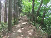 | ←片側が植林の杉林、片側が雑木林の尾根道。 こんな尾根道を進んで行くと、惣岳山へ上る道と惣岳山を巻いて御嶽駅へ下りる分岐に出ます。もちろん巻きません!惣岳山に上ります! |