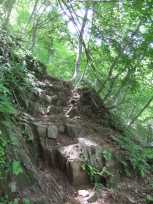 | 同様に竜頭の滝観光をしてから高山への登山道へ入る方々が結構いたので、スタート地点近辺は少し、他の登山者さんとの距離が近め。ペースがそれぞれ違うので、程なくバラケていきました。 →な急登に差しかかったとき、後方から近づいてくる人の気配がするので、立ち止まって先に行っていただきました。 滝上から高山山頂までのコースタイムは80分ですので、滝上から約40分のところで休憩&おやつタイム。 |