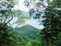 | ←尾根道に出てから少し歩くと、進行方向左手の木々の間から中禅寺湖が見えました。中禅寺湖を上から見下ろすの初めて。 進行方向右手の木の間からは→、あれは戦場ヶ原でしょうか、湿原が姿を見せています。 |