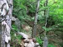 ←高山からの下山には鎖場がありました。慎重に、ゆっくり降ります。 →分岐まで降りてホッと一息。ここで、おばさま方3人組に高山までの道を尋ねられました。小田代原方向から高山に登られるようです。 |