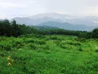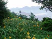 | お弁当を食べ終わった頃、雲が高原の下から湧き上がってきました。 幻想的。 そして再び雨粒がポツポツと落ち始めたので、帰途につきました。 ニッコウキスゲが見られたから、赤薙山にリトライするとしたら、もうこの季節でなくてもいいかも。 |