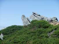 | 魚の口のような岩があったりして目を楽しませてくれます→。 あと少し、あと少しで木曽駒ケ岳の山頂です。 中岳から約30分、木曽駒ケ岳山頂に到着です♪ 山頂には神社があったので、無事の登頂のお礼と下山の無事をお祈りしました。 |