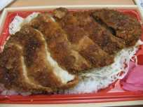 菅の台バスセンターに帰りついて、しらび平駅でのロープウェイの待ち時間の立て看板に目をやると1時間待ちの表示。うっわ〜!すごい。 このとき、13時30分。本当に本当の昼食はどうしましょう。木曽駒ケ岳山頂でのお弁当タイムのおにぎりをいつもの1.5倍の量を食べていて、お腹が空いていません。同行者と相談すると、同行者も満腹とのこと…。相談して、菅の台バスセンター付近のお店でソースかつ丼を食べるのを諦めて、ソースかつ丼のお弁当を販売している別のお店でテイクアウトして後で食べることにしました。 |