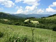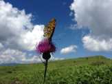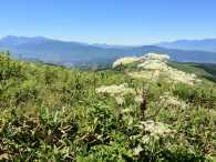 | 朝食付きのプランなのでホテルでゆったり朝食をいただき、霧ヶ峰のスタート地点に到着したのが9時10分。用意をして9時30分にスタート。 まずは、山頂に気象観測レーダーが輝く車山を目指します。 と〜ってもいいお天気で、見渡す限りのパノラマ。そして可憐な高山植物。我を忘れて激写。 |