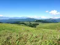 | お弁当を食べ終わり、八島湿原へ向けて出発。 蝶々深山から八島湿原へは細かいアップダウンはあるものの、基本的にはなだらかな丘陵地を下るイメージでした。周囲のどこを見渡しても大パノラマが広がっていて、心が開放されます。 |
